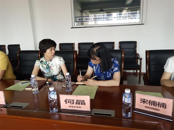 7月5日上午九点,鞍山师范学院高等职业技术学院副院长李贺、赵惠岩、常勇,教务科科长曲丽秋,创新创业指导中心主任焦芬,校企合作部主任魏红敏,机械电子系主任康伟,艺术系主任周艳秋,创新创业专项工作干事王琛等一行8人来我院进行交流调研。压球体育·|(官方)在线官网副院长赵景晖接待了鞍山师范学院高职院一行。教务处处长潘维琴,发展规划处处长沈会超,校企办主任何晶,信息系主任刘中华,自控系副主任姜伟,机械系副主任李涛,创新创业学院执行院长张永江、副院长宋楠楠等领导参加座谈。