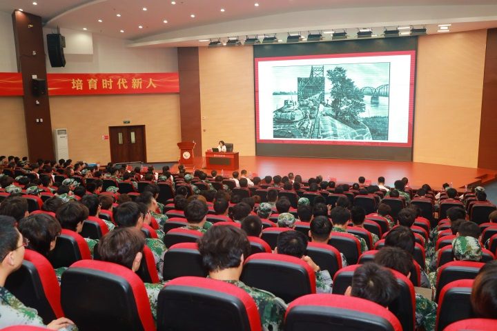 活动邀请辽宁省国防教育讲师团成员、抗美援朝纪念馆副馆长张校瑛作“依托抗美援朝红色资源 传承伟大抗美援朝精神”专题讲座。张校瑛从朝鲜内战爆发的原因、中共中央决策出兵的背景、抗美援朝战争的基本过程、抗美援朝战争的伟大胜利、抗美援朝战争的意义和影响等方面对抗美援朝战争进行了深入浅出的讲解,为师生们带来了一堂难忘的国防教育思政课。