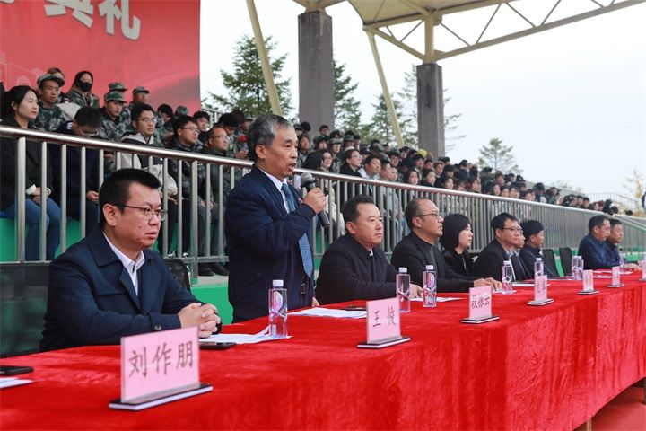 纪委书记沈犁在讲话中充分肯定了本次军训成果,向各位教官表示感谢,向参训同学表示祝贺,向全体随训教师表示问候。他希望同学们树立家国情怀、增强纪律意识、淬炼钢铁意志,祝愿军训之光伴同学们成长、成才、成功。