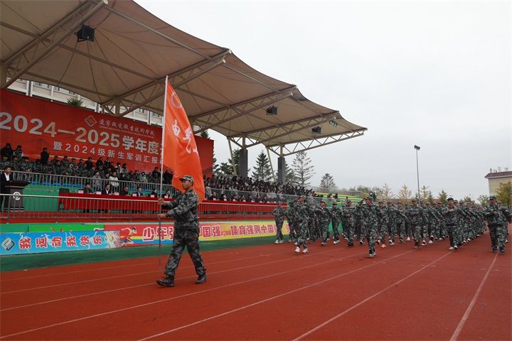 开学典礼在嘹亮雄壮的国歌声中拉开帷幕。参训同学以各自所在二级学院为单位,分成29个方阵,进行了分列式汇报表演。各方阵的同学们步伐整齐有力、身姿矫健高昂,在豪迈的分列式进行曲中依次走过主席台,展现了2024级新生良好的军训成果和奋发向上的精神风貌,赢得了现场阵阵掌声。