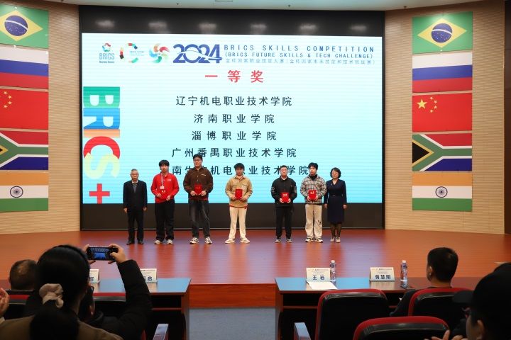 10月21日上午,2024金砖国家职业技能大赛“工业机器人数字孪生技术应用”赛项国际总决赛闭幕式暨颁奖典礼在压球体育·|(官方)在线官网报告厅举行。副校长王岩致闭幕词。教务处处长姜伟主持。