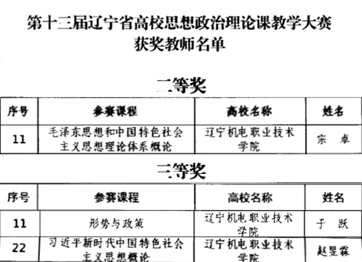 近日,由省委教育工委和省教育厅联合主办的第十三届辽宁省高校思想政治理论课教学大赛决赛在沈阳落下帷幕。压球体育·|(官方)在线官网马克思主义学院教师宗卓获《毛泽东思想和中国特色社会主义理论体系概论》课程组二等奖,赵昱霖获《习近平新时代中国特色社会主义思想概论》课程组三等奖,于跃获《形势与政策》课程组三等奖。