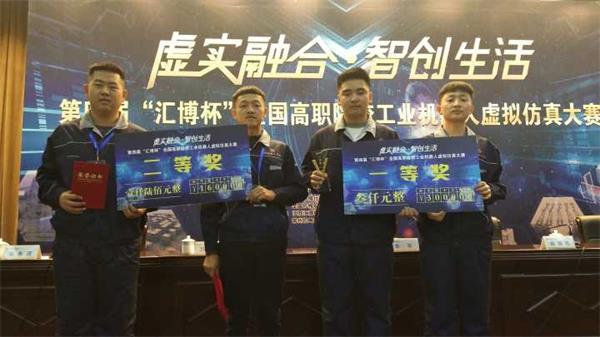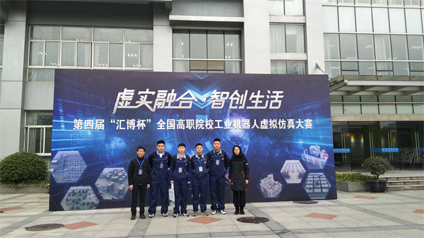 2018年12月27—28日,第四届“汇博杯”全国高职院校工业机器人虚拟仿真大赛在常州机电学院举办,由我院教师王超和卞秀辉指导学生宋建辉、范佳鑫、肖征雷、刘潇博组成两支队伍,荣获工业机器人虚拟调试赛项一等奖与二等奖。