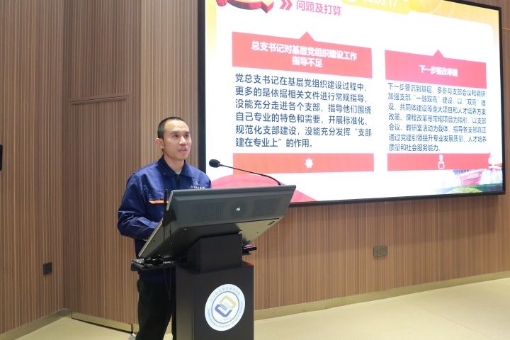 会上,各二级学院党总支书记结合工作实际,按照要求汇报了上年度查摆的问题整改情况、2024年度基层党建工作重点任务完成情况、存在问题及下步工作打算。党委书记于宏国采取“一述一评”的方式进行点评,在肯定成绩的同时指出存在的问题,并就下一步工作提出改进要求。