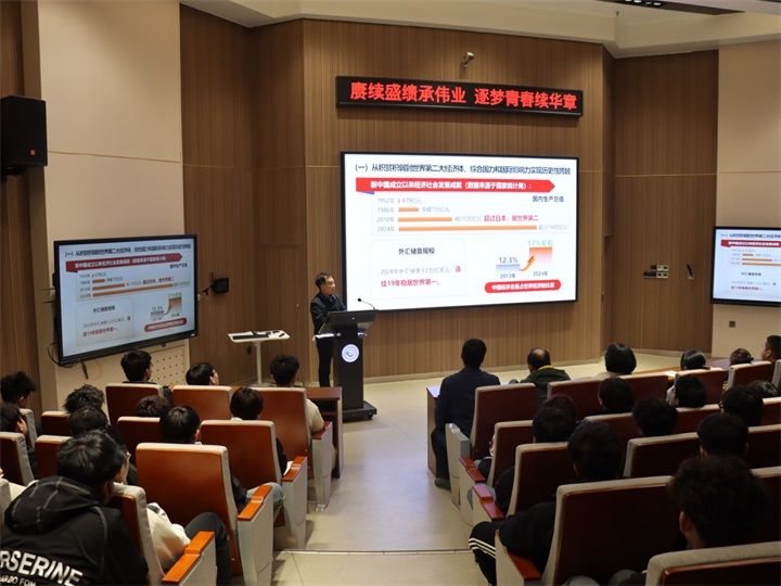 4月10日上午,党委副书记、校长段振云以“赓续盛绩承伟业、逐梦青春续华章”为题,为机械工程学院学生讲授思政课。
