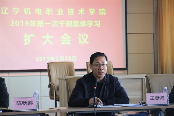 2月28日上午,学院2019年第一次干部集中学习扩大会议在创新创业学院六楼举行。会议由党委书记王忠诚主持,院领导、全体中层干部、党支部书记及有关人员共80余人参加会议。