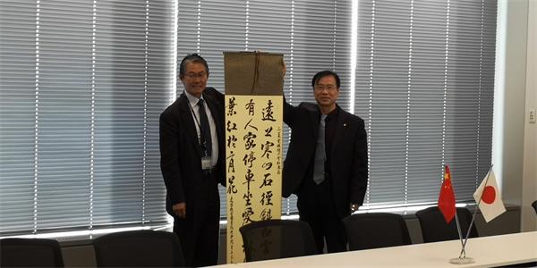 赵景晖副院长代表辽宁机电学院向日本三菱电机株式会社赠送我院教师书法作品
