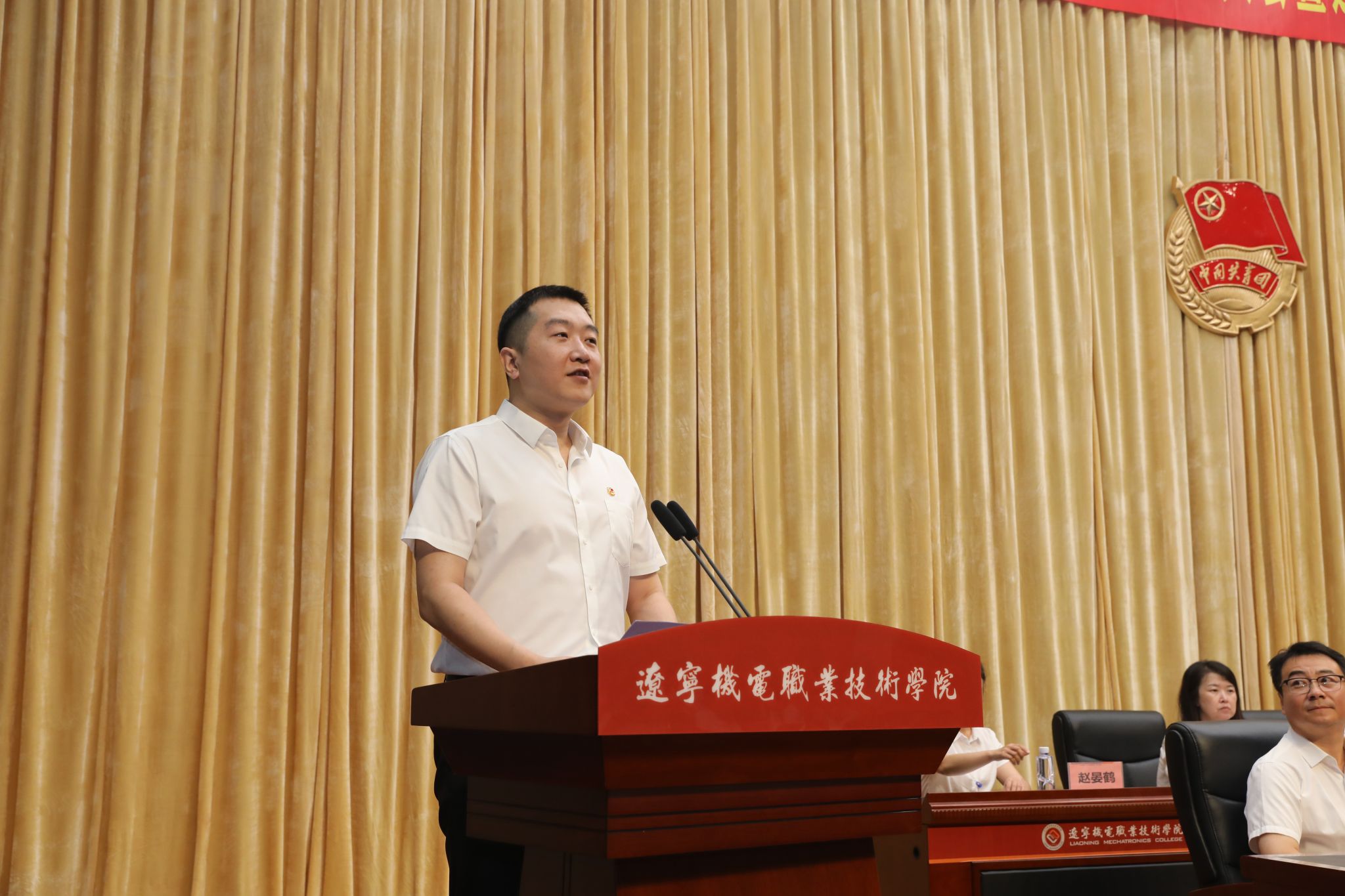 同时,学校工会副主席李亮、辽东学院团委书记夏巍分别代表群团组织、兄弟院校团委致贺词。
