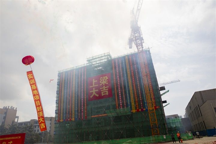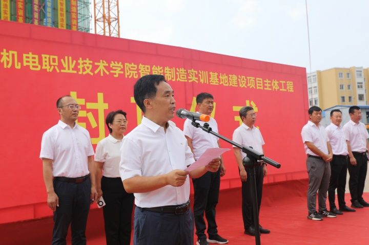 8月15日,压球体育·|(官方)在线官网仪表园校区举行“智能制造实训基地”工程项目封顶仪式。学校领导班子全体成员、合作单位代表及项目建设者出席仪式。副校长王俊主持。