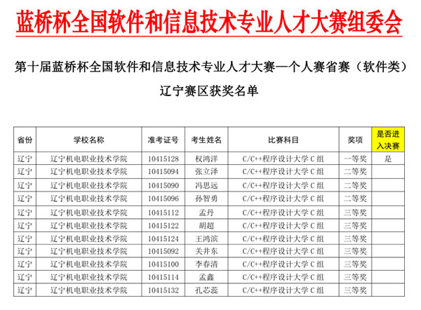 功夫不负有心人,在指导老师与参赛学生历时半年的练习与准备下,终于取得了理想的成绩,其中荣获辽宁赛区一等奖的学生将代表辽宁省参加全国总决赛。