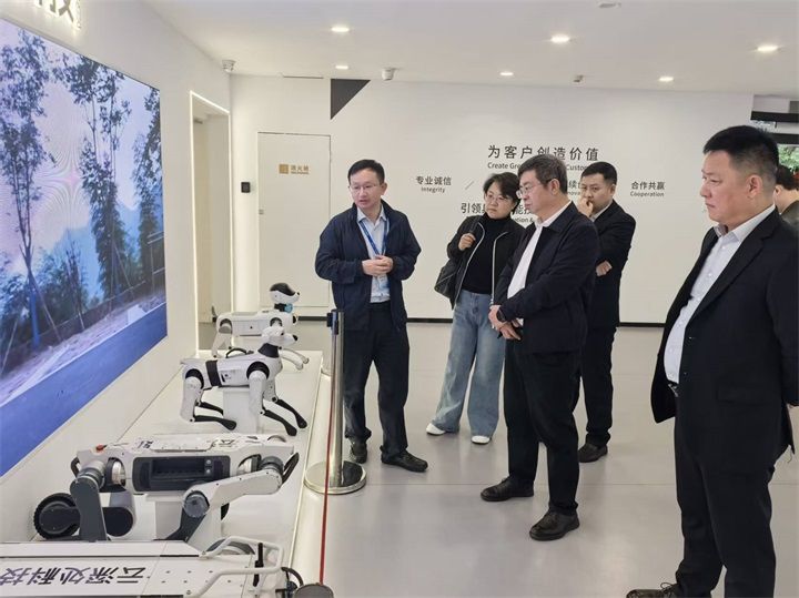 在智元创新(上海)科技有限公司,曲壮凯一行深入企业AI数据采集工厂及企业智能展厅,校企双方围绕产业人才需求和智元教育方案展开交流,确定了校企合作基本模式和思路;在浙江亚龙智能装备集团有限公司,董事长陈继全向曲壮凯一行详细介绍企业发展历程与核心产业,曲壮凯表示期待校企继续深度合作;在杭州云深处科技有限公司,曲壮凯一行观看了四足机器人的多应用场景训练和演示,充分了解四足机器人的应用场景,并结合AI具身机器人的发展现状开展研讨。