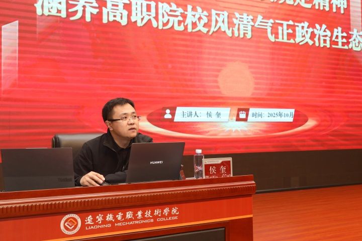 会议邀请省纪委监委驻教育厅纪检监察组第二纪检监察室主任侯奎作《深入贯彻中央八项规定精神 涵养高职院校风清气正政治生态》专题辅导报告。报告内容翔实、案例典型、分析深刻,既有理论指导性,又有现实针对性,对学校进一步抓好作风建设、涵养风清气正的政治生态具有重要的指导意义。