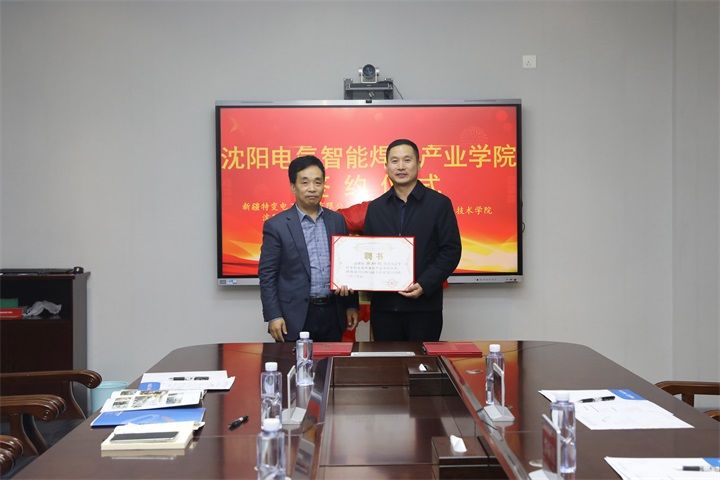 段振云向李新祖颁发“沈阳电气智能焊接产业学院”院长聘书,标志着双方合作进入实体化运行、文化共融的新阶段。
