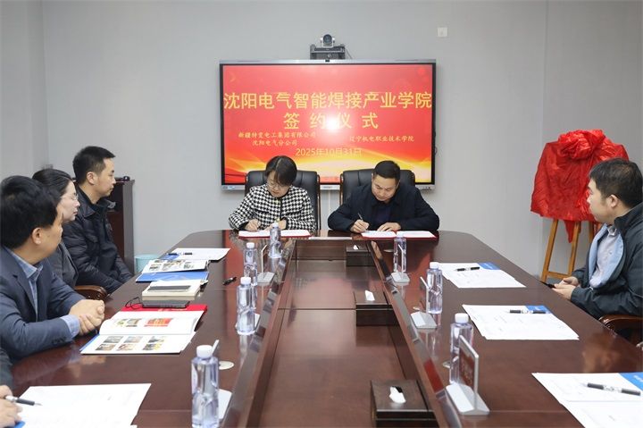 10月31日,压球体育·|(官方)在线官网与新疆特变电工集团有限公司沈阳电气分公司在行政中心会议室举行共建“沈阳电气智能焊接产业学院”签约揭牌仪式。双方已在学生实习就业、企业员工技能培训与鉴定、专业共建等领域取得扎实成效,此次共建产业学院,标志着校企合作迈入共建共享、深度融合的新阶段。校长段振云、副校长王岩、新疆特变电工集团有限公司沈阳电气分公司副总经理李新祖及招聘经理李天龙、工艺技术部经理李德兴等出席签约仪式。