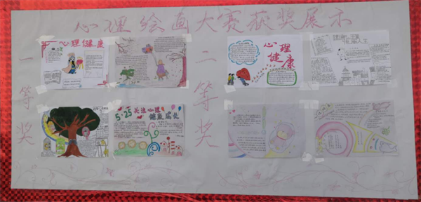为了提升学生心理素养,发掘学生潜力,促使学生思考生命意义,学会以乐观的心态面对人生,从4月初开始,在全校范围内征集心理绘画和心理微视频作品,历经1个月时间共收集全校学生绘画作品50份,微视频作品8份。组织教师对征集作品进行了集中评审,并将获奖作品制成展板于5月24日下午进行了展览和表彰。