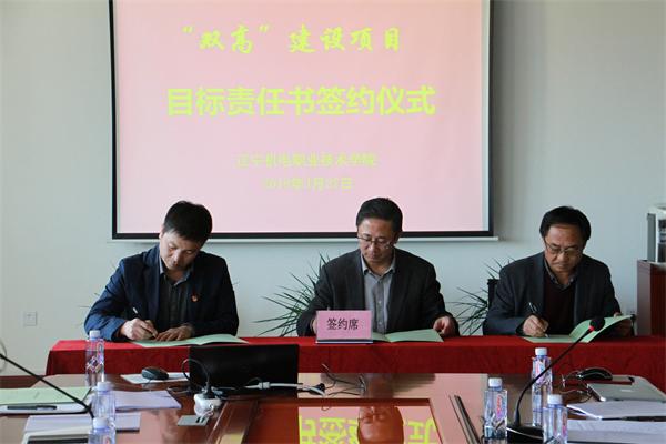 会上举行了“双高”项目建设目标责任书的签署仪式。“双高”项目建设领导小组组长、党委书记王忠诚同各项目组负责人、分管院级领导签署了三方目标责任书。通过目标责任书的签订,要求各部门严格按照“双高”项目建设方案和建设任务书的内容完成建设任务,本着“谁主管,谁负责;任务到人,责任到人”的原则,将建设任务落到实处。