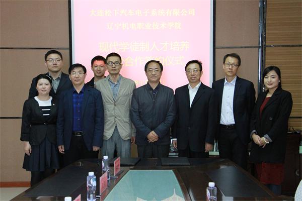 会谈结束后,学院副院长佟海军代表我院与大连松下汽车电子系统有限公司签订现代学徒制培养协议并在黄海汽车学院举行了首届现代学徒制“松下班”开班典礼。