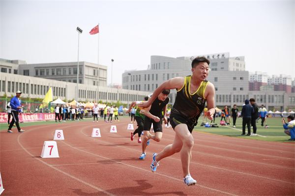9:00各赛项比赛正式开始,运动员在赛场上努力拼搏,为了各自的荣誉而战,你追我赶,奋勇向前,充分体现了奥林匹克精神,为了“更高、更快、更强”的目标奔跑着。场下更是一片欢腾,各院系拉拉队都卖足了力气,大声的为各自的运动员加油呐喊助威,好象声音小了就会输掉比赛一般,锣鼓齐鸣,喊声震天,气氛热烈。教师运动员同样不甘示弱,虽然有的老师年龄比较大,但拼搏精神一点也不输给年青同学,他们都认真完成比赛,为同学们做了好榜样。老师、同学都享受着运动带来的欢乐与激情。本次运动会项目上进行了一定调整,更加紧凑有趣,赢得了师生好评。