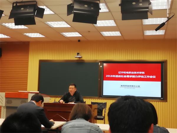为贯彻落实《国务院教育督导委员会办公室关于开展2018年全国职业院校评估工作的通知》(国教督办函〔2018〕17号)和《辽宁省教育厅办公室关于开展2018年职业院校评估工作的通知》(辽教办〔2018〕48号)精神,我院于2018年5月18日下午13:30在大学生素质教育中心四楼录播室召开了2018年适应社会需求能力评估工作会议,参加会议的有学院党委书记王忠诚、副院长赵景晖、各相关部门负责人及数据采集管理员,会议由绩效管理部、教育质量管理办公室主任王振家主持。