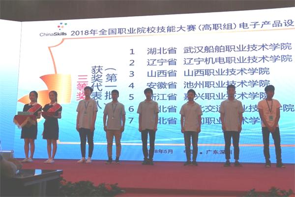 2018年5月23日,全国职业院校技能大赛电子产品设计与制作赛项在深圳信息职业技术学院举行。我院派出代表队由华孚仪表学院执行副院长宋艳丽副教授带队,白天明、程权成担任指导教师,指导工业过程自动化专业学生刘岑、工业自动化仪表专业的张浩、电子信息工程技术专业的高永亮,代表辽宁省参加比赛,经过十三个小时的比拼,最终获得三等奖第二名的成绩。