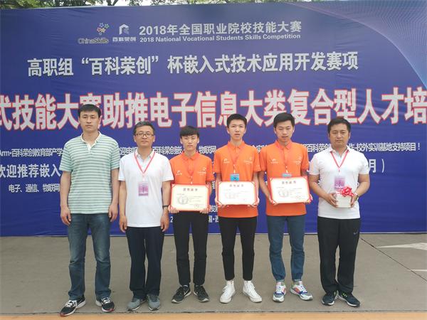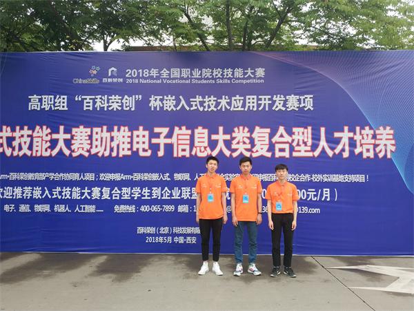5月26日下午,全国职业技能大赛高职组“百科荣创杯”嵌入式技术应用开发比赛正式在西安航空职业技术学院开幕。经过12个小时的激烈角逐,信息工程系学生刘纪新、宋健、于荣达最终在全国28个省市90多支队伍中脱颖而出,在本次大赛中取得国赛三等奖的优异成绩。这是我院连续第三次获得全国职业技能大赛高职组“百科荣创杯”嵌入式技术应用开发赛项三等奖。