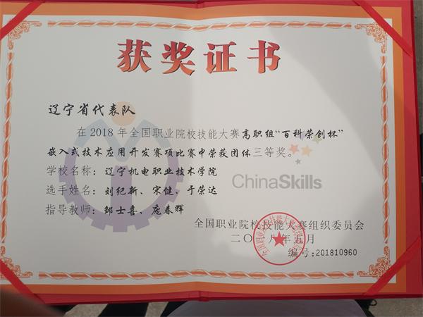 我院学子在全国职业技能大赛嵌入式技术应用开发赛项中荣获全国三等奖