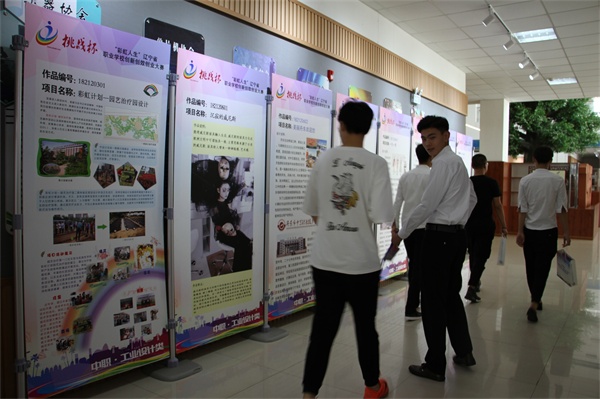 作品展示环节,通过参赛选手悉心准备,来自省内40所职业学校,226份作品集体展出。
