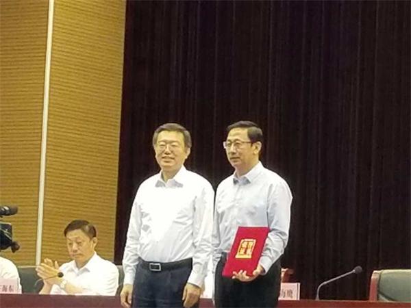 丹东市委书记葛海鹰为王忠诚教授颁发证书并合影