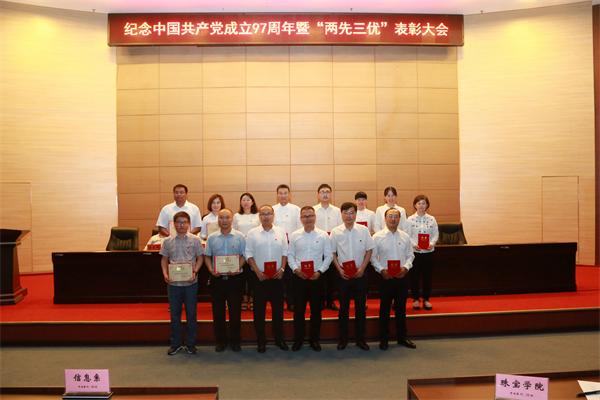 党委副书记兼纪委书记陈秋鹏宣读《学院党委关于表彰2017—2018年度“两先三优”的决定》,有2个先进党总支部、8个先进党支部、28名优秀共产党员、14名优秀党务工作者、7名优秀大学生党员受到表彰。学院党委领导为受表彰的先进党组织和优秀个人颁发了牌匾和证书。