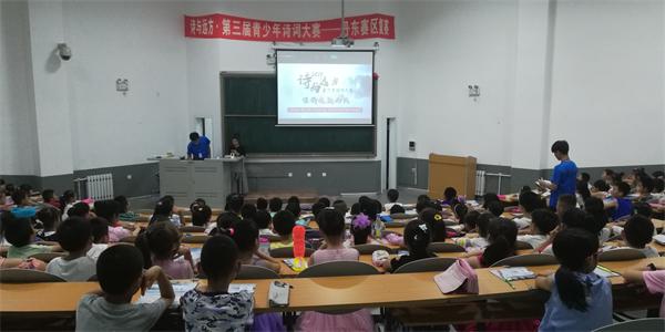 7月7日,由沈阳广播电视台、中小学赛事联盟、沈阳小学生联合主办的“诗与远方”第三届青少年诗词大赛丹东赛区复赛在我院仪表园校区举办,全市800余名小学生参加比赛,团委组织青年志愿者总队承担本次大赛赛事服务工作。