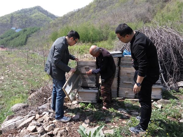 扶贫队了解蜂箱的结构,为帮扶建档立卡户采购蜂箱做准备