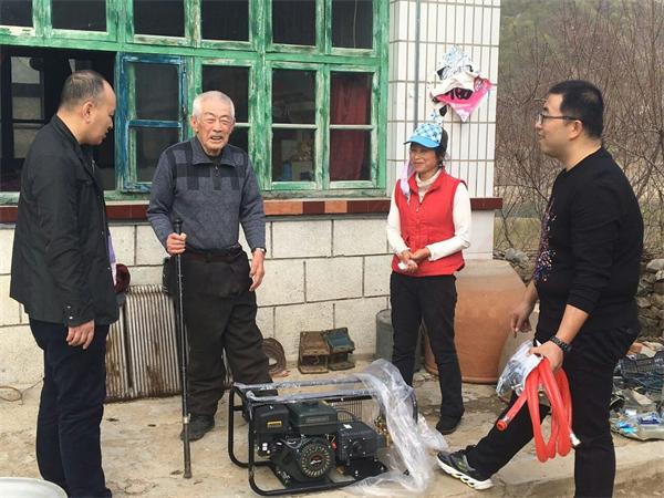 扶贫队把大型农药喷洒机送到残疾老人任福珍老人家中