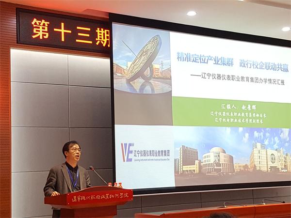 在主题报告环节,赵景辉副院长首先介绍了辽宁仪器仪表职业教育集团的概况和取得成效;接下来,他从创新办学体制机制、搭建社会服务平台、推进院校协同发展、实现专业共建共享、拓展双创教育空间等五个方面对集团化办学成果进行了汇报;最后,指出了集团化办学遇到的困难和下一步工作计划。