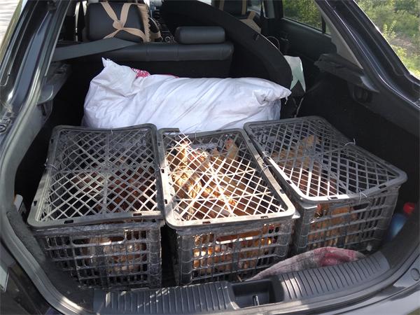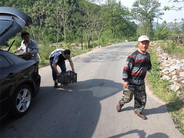 扶贫队队员用自己的车为建档立卡户运雏鸡