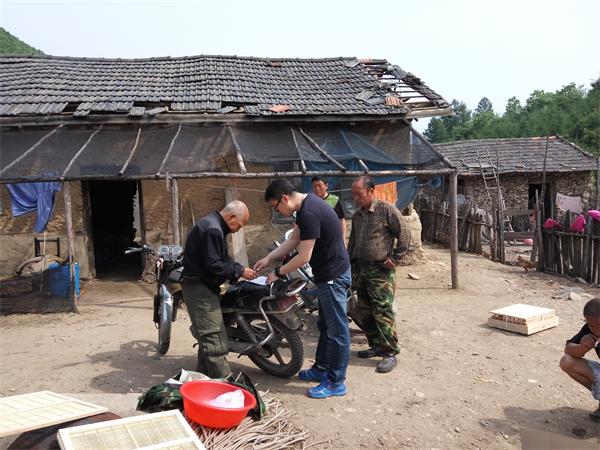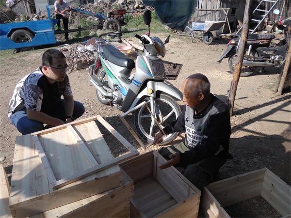 郭宝有老人填写扶贫物资接收记录扶贫队与金文亮老人一起组装风箱金文亮老人在扶贫物资交接记录上签字扶贫队采购蜂箱原料,并研究如何组装组装完后的风箱扶贫队与乡包村干部交流扶贫心得 (扶贫队 赵东明 姜楠 王冠鹏)