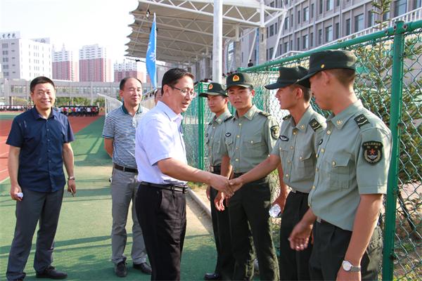 领导来到仪表园校区操场看望慰问军训教官与新生