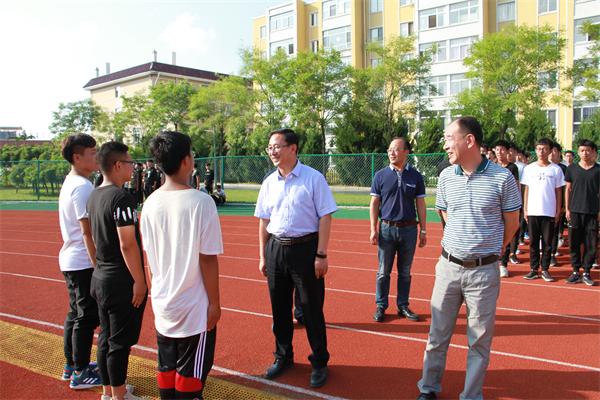 王书记来到仪表园校区,与军训教官进行亲切交谈,他希望教官能把部队上的优良传统作风带到学校、带给学生,通过军训使学生能够快速成长起来。他又来到学生队伍中,与军训学生进行交流,鼓励学生克服困难,珍惜训练机会,好好锻炼自己,同时也要照顾好自己的身体。随后,领导一行来到浪头校区慰问军训教官和新生。