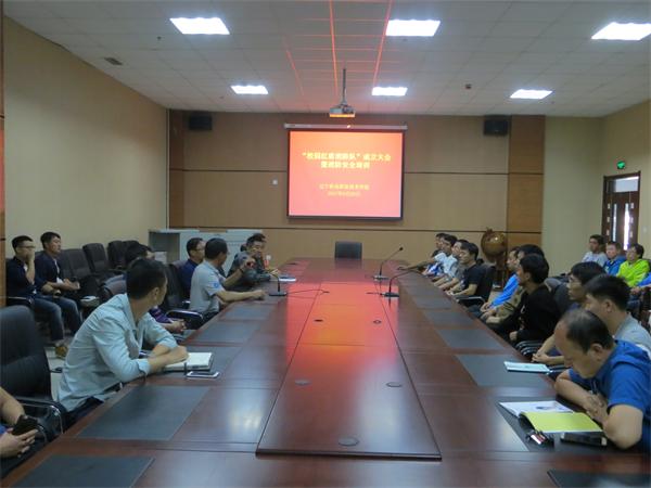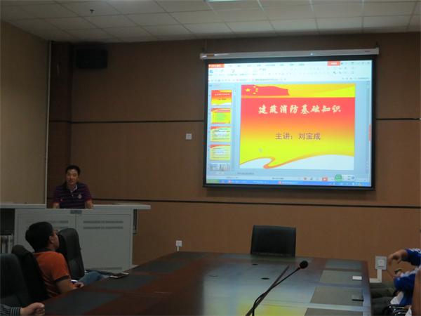“成立大会”结束后,消防安全培训正式开始。为做好本次培训,安保部邀请了承担学院消防维保工作的丹东市金盾消防自动设施检测有限公司刘宝成经理担任本次培训的教员。