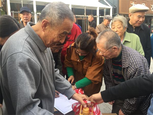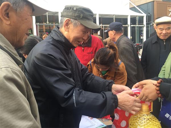 10月25日下午2:30,院工会的工作人员到达指定地点,等待着离退休教工们过来领取重阳节礼物。离退休教工们见面的时候,相互问候、握手、回忆着过去,述说着现状,场面温馨快乐。离退休教工们有序的领取完礼物后,相互合影留念。