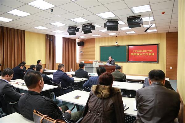 为认真贯彻落实全国、全省高校思想政治工作会议精神和十九大精神,贯彻落实中共中央、国务院《关于加强和改进新形势下高校思想政治工作的意见》(中发[2016]31号)和中共辽宁省委、辽宁省人民政府《关于加强和改进新形势下高校思想政治工作的实施意见》(辽委发[2017]31号)文件精神,推进学院思想政治工作再上新台阶,11月17日,在学院大学生素质中心录播教室召开学院思想政治工作会议。学院领导班子、党委委员、全体中层干部、党总支书记、支部书记、思政理论课教师、辅导员参加了会议。会议由党委副书记陈秋鹏主持。