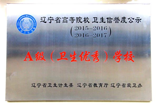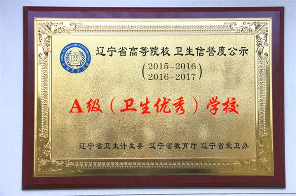 我院获评辽宁省高校卫生信誉度A级单位牌匾