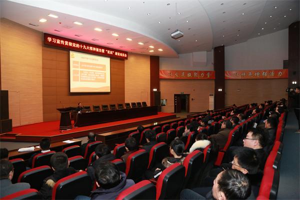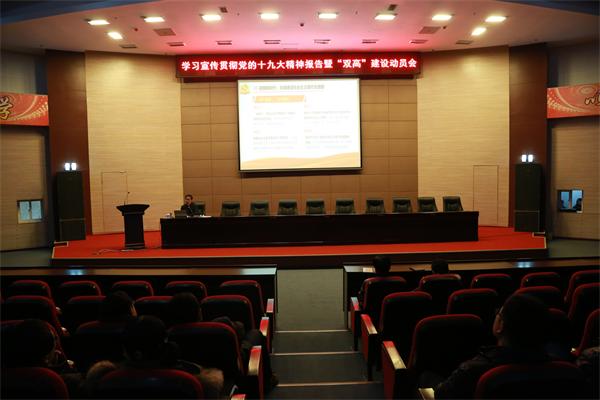 12月13日下午1:30分,我院在学院报告厅召开学习贯彻党的十九大精神报告会暨“双高”建设动员会,党委书记王忠诚教授作题为《迎接新时代 抓住新机遇 牢记新使命 开启新征程——以十九大精神引领学院“双高”建设》的报告。全院教职工参加此次会议,党委副书记陈秋鹏主持会议。