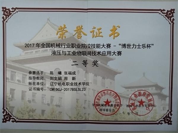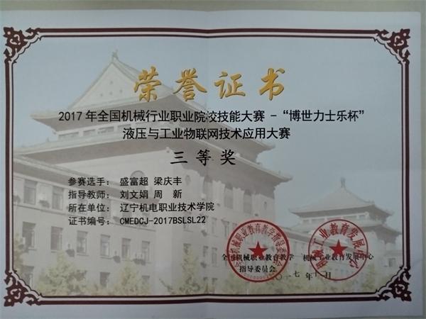 我院学子荣获2017年全国机械行业职业院校“液压与工业物联网技术应用大赛”二等奖与三等奖