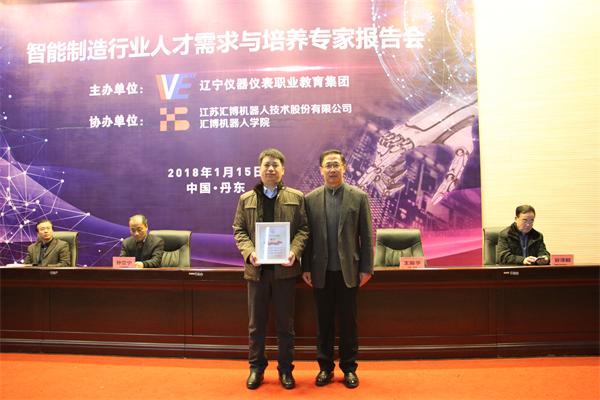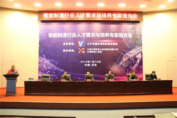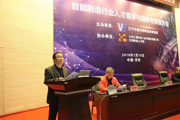 2018年1月15日,“智能制造行业人才需求与培养专家报告会”在我院召开,本次会议由辽宁仪器仪表职业教育集团主办,江苏汇博机器人技术股份有限公司、汇博机器人学院承办。长江学者特聘教授、国家863项目专家、苏州大学机电工程学院院长、博士生导师孙立宁教授,江苏汇博机器人技术股份有限公司总裁、博士王振华教授,汇博机器人学院执行院长张可安教授,辽宁仪器仪表职业教育集团常务副理事长、压球体育·|(官方)在线官网党委书记王忠诚教授,辽宁仪器仪表职业教育集团秘书长、压球体育·|(官方)在线官网副院长赵景晖教授,丹东新区企业家协会秘书长、压球体育·|(官方)在线官网校企合作委员会主任谷泽毅同志,集团内企业负责人及技术人员、中高职院校的领导、老师共200余人参加了本次研讨会,会议由汇博机器人学院执行院长张可安教授主持。