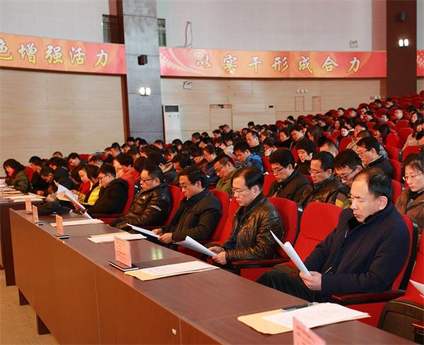 王书记报告中还客观分析了学院各项工作中存在的不足,提出了今后工作的指导方针:全体教职员工要在学院党委的领导下,聚心聚力聚智,同德同向同行,全面贯彻党的十八大,十八届三中、四中、五中、六中全会精神和习近平总书记系列重要讲话精神,全面落实全国高校思想政治工作会议精神,按照国家深化高等教育综合改革统一部署和全省教育工作会议要求,以提高质量为核心,以产教融合为主线,以深化改革为动力,以项目建设为抓手,以争创一流为目标,以学生受益、学院发展为根本出发点,全力推进落实十项重点行政工作全面开启创建高水平现代化创新型优质高职院校的新征程。结合学院工作指导方针,王书记在报告中提出了2017年的十项重点行政工作任务和措施:1、精心组织,确保高质量通过省示范校验收;2、精心谋划,全面启动高水平现代化创新型优质高职院校建设;3、精准施策,争创国家示范性骨干职业教育集团;4、创新驱动,全力推进创新创业学院建设;5、精细管理,深入推进教学质量诊改机制建设;6、深化改革,不断提高人才培养质量;7、创新发展,着力增强教科研和服务社会能力;8、立德树人,全面落实全国高校思政工作会议精神;9、加强管理,全面打造文明美丽校园新环境;10、完善考核,努力提升治校能力和水平。