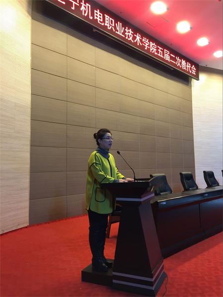 上午10:20,五届二次教代会正式大会在庄严的国歌声中隆重召开。全体教职工听取了由院党委书记王忠诚同志所做的题为《坚持创新引领 推进发展升级 开启创建高水平现代化创新型优质高职院校新征程》的学院工作报告。代表们还书面审议了《2016年度学院财务决算报告及2017年度学院财务预算报告》和《五届一次教代会提案工作报告》。