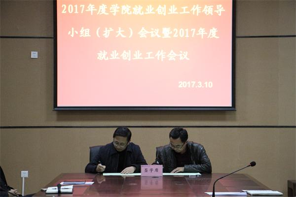最后,王书记与各院(系)负责人一一签订了《学院2017年就业创业工作目标责任书》。