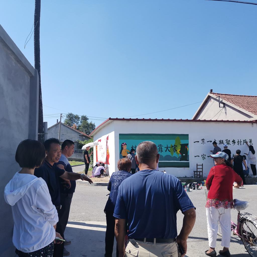本次活动得到了当地村委和村民的热烈欢迎。实践团成员在村领导的带领下详细了解了中和村的文化历史和整体概况,墙绘地址选为村入口、村主干道等地的白墙。随后活动正式开始,组员们熟练运用专业课上学习到的绘画知识,分工明确地进行着墙绘工作,定比、勾形、调色、上色,整个过程有条不紊。墙绘过程中,不少村民前来围观,实践团成员们与村民亲切交流,活动现场氛围高涨。墙绘作品最终受到村民的一致好评,美丽的墙绘不仅成为乡村的一道亮丽风景线,也成为了宣传新农村建设的无声解说员。