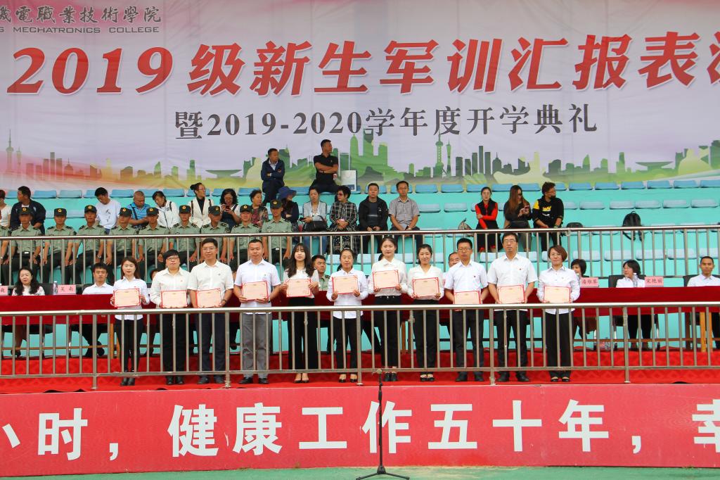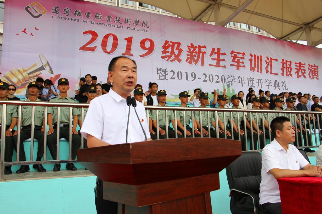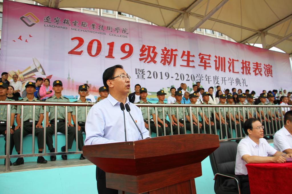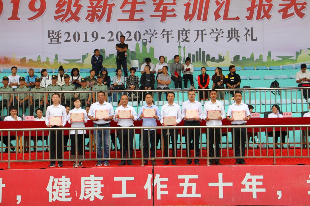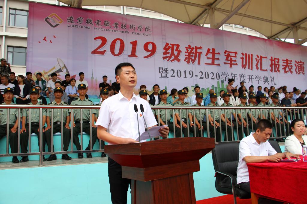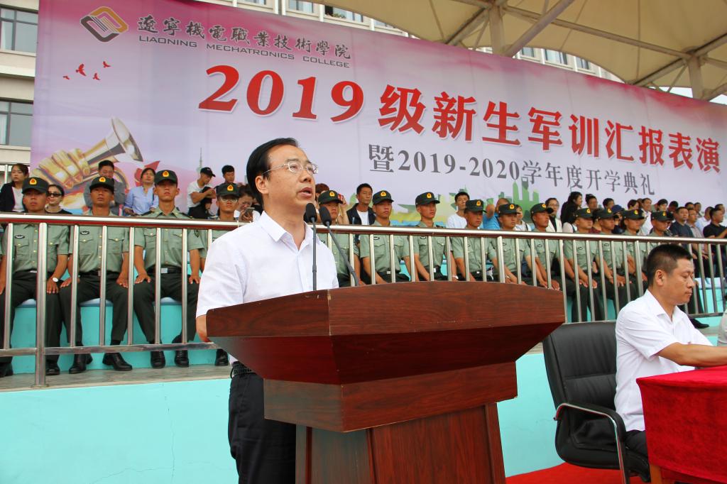 秋高气爽,丹桂飘香,9月12日上午10:00,我院2019级军训汇报表演暨2019—2020学年度开学典礼在仪表园校区体育场如期举行。65735部队管理科科长刘红喜,学院党委书记王忠诚,党委副书记、纪委书记陈秋鹏,副院长赵景晖,副院长佟海军,教务处长,学生处长,各院系党总支书记,教师代表及家长委员会副主任主席台就坐。全体辅导员、2019级新生班级全体班导师、家长委员会成员、各类先进代表以及2019级2900余名新生参加此次大会。