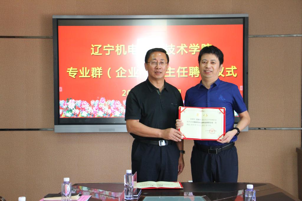 党委书记王忠诚为智能控制技术专业群(企业)群主任王振华颁发聘书
